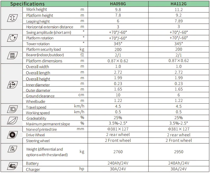 Safe Operation: Tilt and overload alarms, negative brake system, and emergency manual decline protect operators at high altitude.